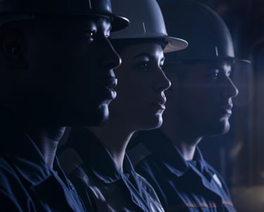 Para dar profundidade visual à história do Safety Day, os cenários foram desenvolvidos com Inteligência Artificial e meticulosamente personalizados para refletir a identidade corporativa. A postura fotográfica dos colaboradores nas peças não é acidental: peito aberto, olhar altivo e focado no horizonte. Essa linguagem corporal traduz visualmente a vigilância, a coragem e a prontidão necessárias para agir com segurança.